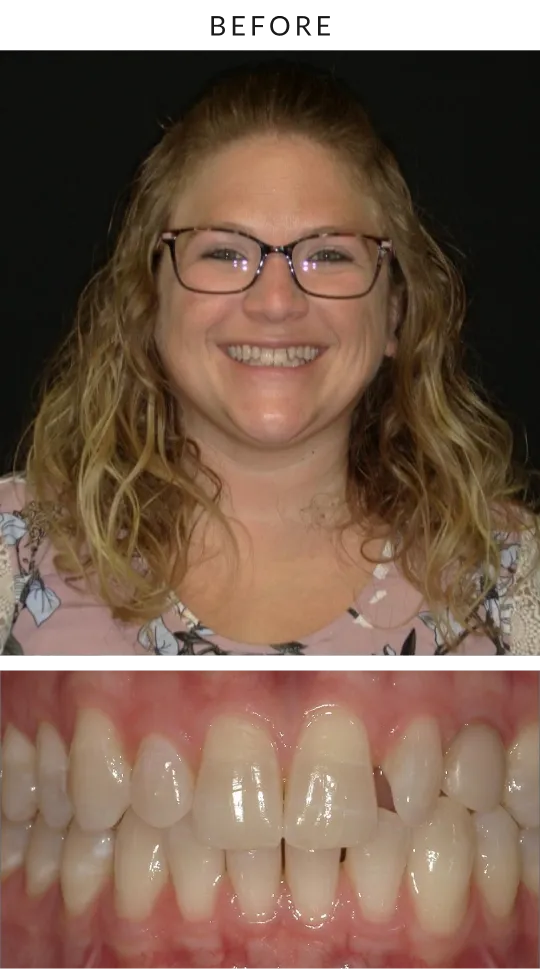 We first aligned this patient’s teeth with Invisalign, then used composite veneers to refine the shape and enhance the overall appearance resulting in a straighter, more polished smile.